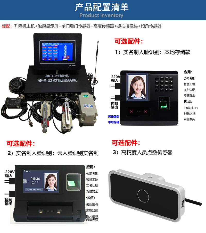 升降機安全監(jiān)控系統(tǒng),通過人工智能對“非法人員操控升降機’和”維保不及時,安全裝置易失效”等安全隱患,通過本地與云端實名制,實現(xiàn)升降機的操作人員的持證上崗,有效防止一機多人駕駛的問題;通過先進的監(jiān)測設(shè)備、精準監(jiān)測運行狀態(tài)與數(shù)據(jù),防患于未然。