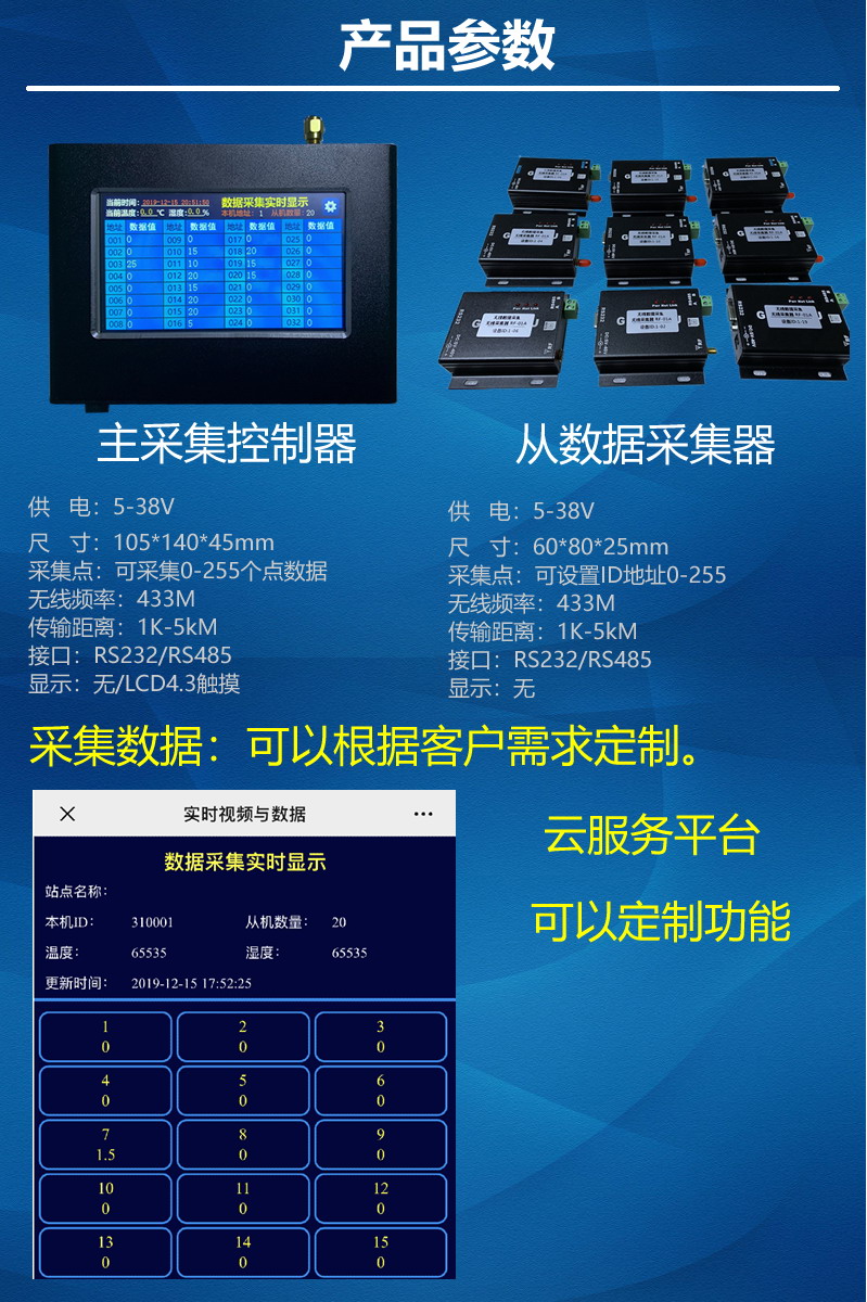 1、無(wú)線數(shù)據(jù)包括:溫度、濕度、重量等參數(shù)無(wú)線采集(可根據(jù)客戶要求定制);