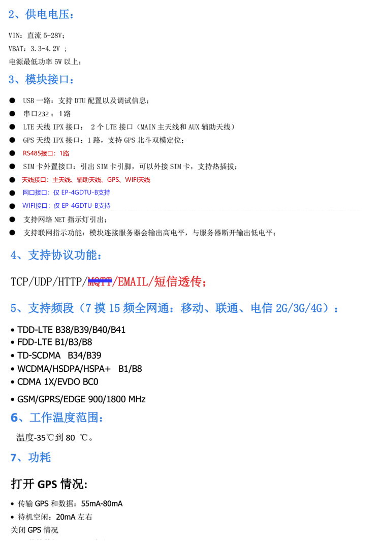 (2) EP-4GDTU-B:支持串口透傳(RS2322/RS485),僅支持一路服務(wù)器設(shè)置。支持網(wǎng)口    WIFI.支持GPS數(shù)據(jù)上傳。