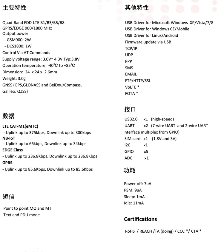 和GPRS/EDGE,數(shù)據(jù)傳輸速度最高可達(dá)到375Kbps。SIM7000C擁有豐富的接口,包括UART,USB2.0,GPIO等,