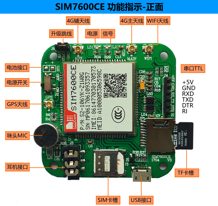 4G模塊為SIM7600CE全網(wǎng)通:支持移動、聯(lián)通、電信 2G/3G/4G網(wǎng)絡(luò)