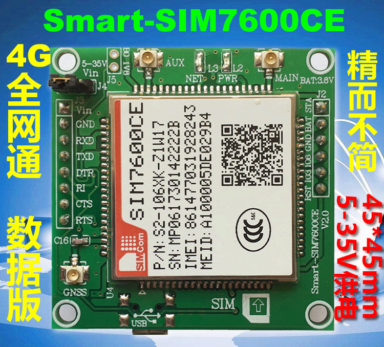 4G模塊為SIM7600CE全網(wǎng)通:支持移動、聯(lián)通、電信 2G/3G/4G網(wǎng)絡(luò)