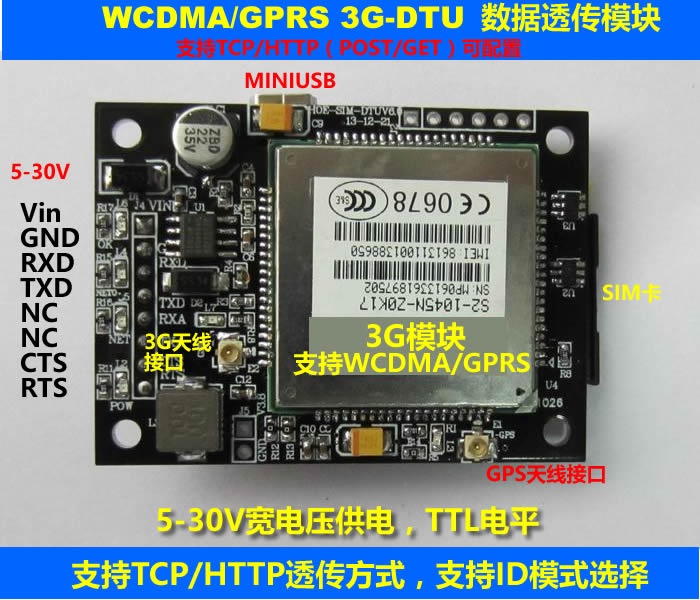 3G-DTU數(shù)據(jù)透?jìng)髂K,支持TCP/HTTP透?jìng)髂J竭x擇,支持GET/POST傳輸方式選擇,支持設(shè)備ID號(hào)信息設(shè)定。電壓支持5-30V寬電壓,溫度-30-80度。