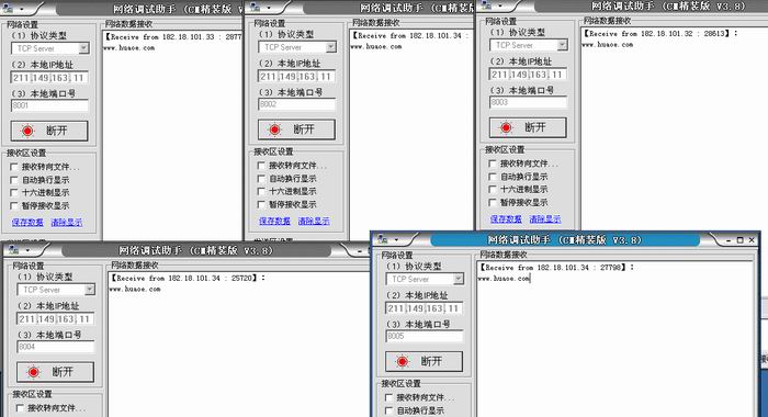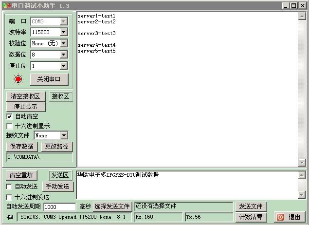 串口也會收到五個服務器發(fā)來的數(shù)據(jù):