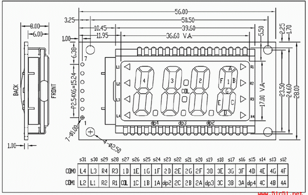 1.CS 2.CLK(WR) 3.DI 4.VSS 5.VDD 6.LED+ 7.LED-