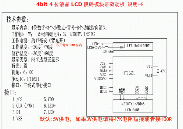 LCD段碼液晶,板載HT1621驅(qū)動芯片,CPU直接驅(qū)動即可!