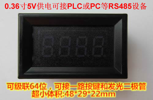 0.36寸四位數(shù)碼管模塊RS485接口,電壓單5V供電??梢约壜?lián),地址控制顯示,操作簡單,只需按規(guī)定發(fā)數(shù)據(jù)給模塊,LED就能及時顯示。支持小數(shù)點0-9數(shù)字以及ABCDEF和HLnuUPo-等字符顯示、可以8級亮度調(diào)節(jié),支持波特率修改保存。最大級聯(lián)支持64個。