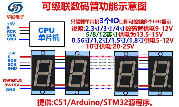 只需要單片機(jī)3IO口既可以驅(qū)動(dòng)多個(gè)LED數(shù)碼管級(jí)聯(lián).