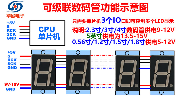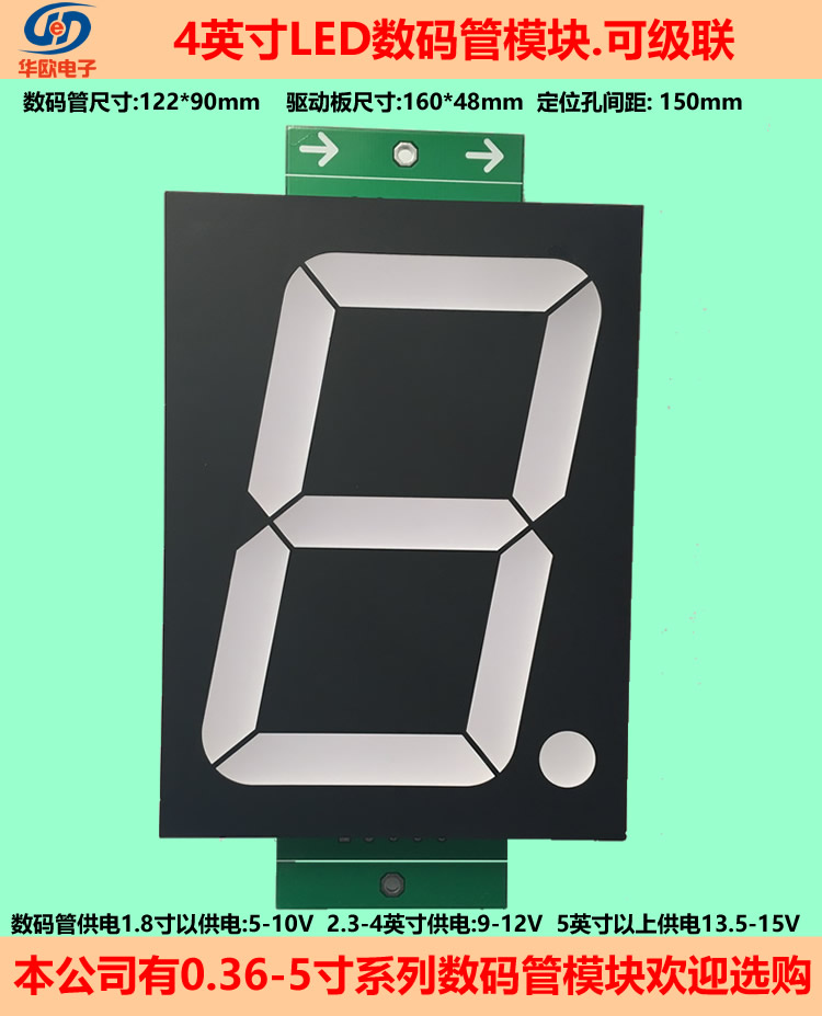 一位4英寸共陽級(jí)數(shù)碼管模塊,可以級(jí)聯(lián)。供電電壓9-12V
