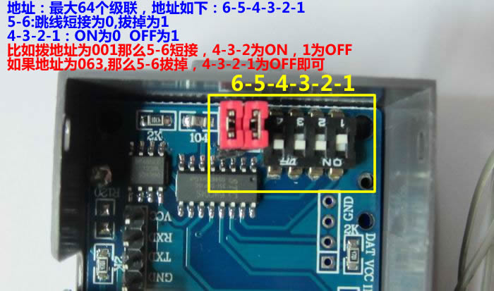 1、端子引出:VCC B A GND (VCC:3-5.5V)