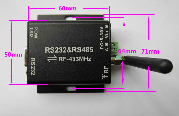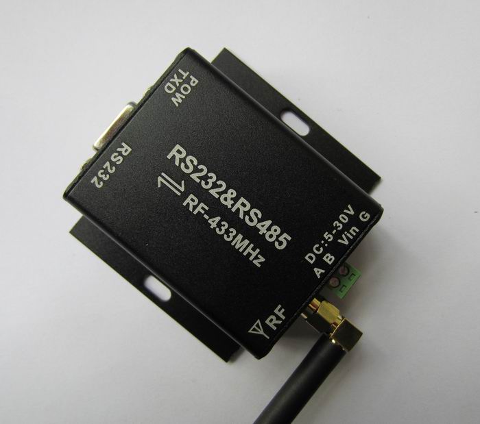RF無線數(shù)據(jù)傳輸支持串口RS232、RS485轉(zhuǎn)無線,替代原來的RS232或者RS485有線通訊,通訊距離1500-1800米,工作頻率 418 - 455MHz 通訊頻道,連續(xù)可調(diào) ,發(fā)射功率:最高100mW 可調(diào)),供電電壓:5 - 30V電流消耗:小于32mA(接收),小于100mA(發(fā)射)