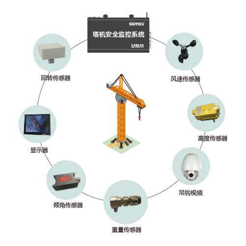 共友塔機安全監(jiān)控系統(tǒng)適用于動臂與平頭塔機,基于傳感器技術(shù)、嵌入式技術(shù)、數(shù)據(jù)采集技術(shù)、數(shù)據(jù)融合處理、無線傳感網(wǎng)絡(luò)與遠(yuǎn)程數(shù)